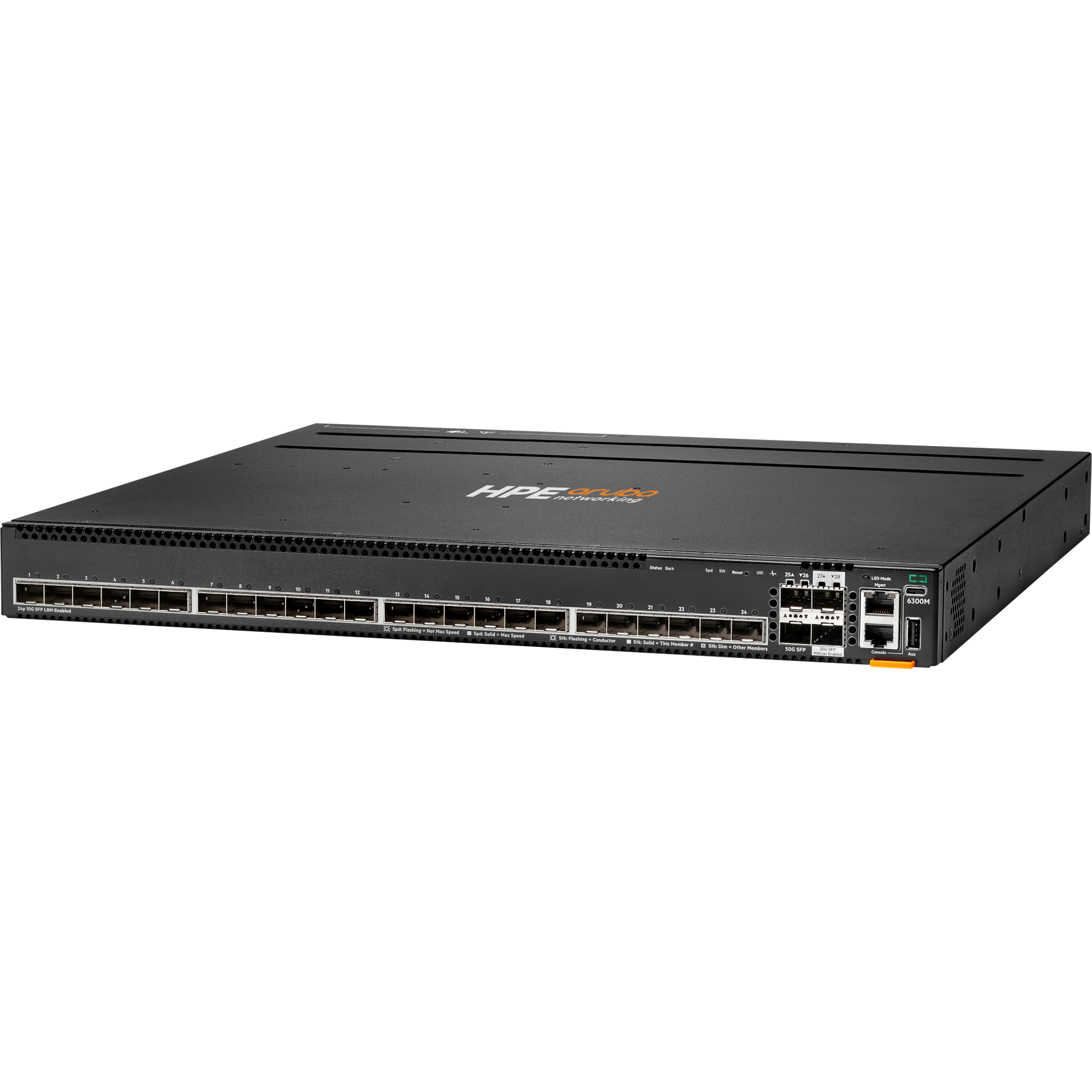 HPE Aruba Networking CX 6300M 24p SFP+ LRM support and 2p 50G and 2p 25G MACSec Switch