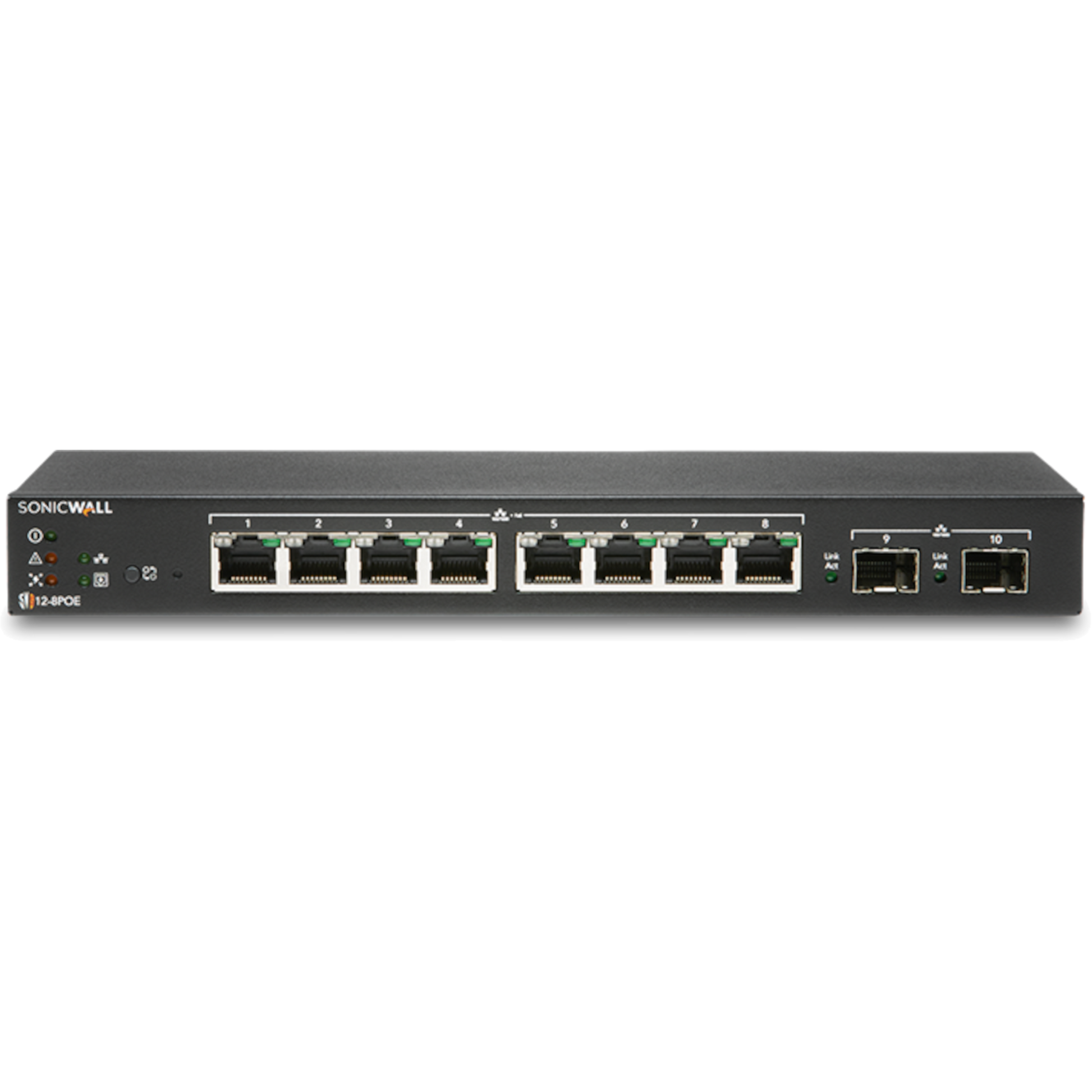 SONICWALL SWITCH SWS12-8POE WITH WIRELESS NETWORK MANAGEMENT ESSENTIAL AND SUPPORT 1YR