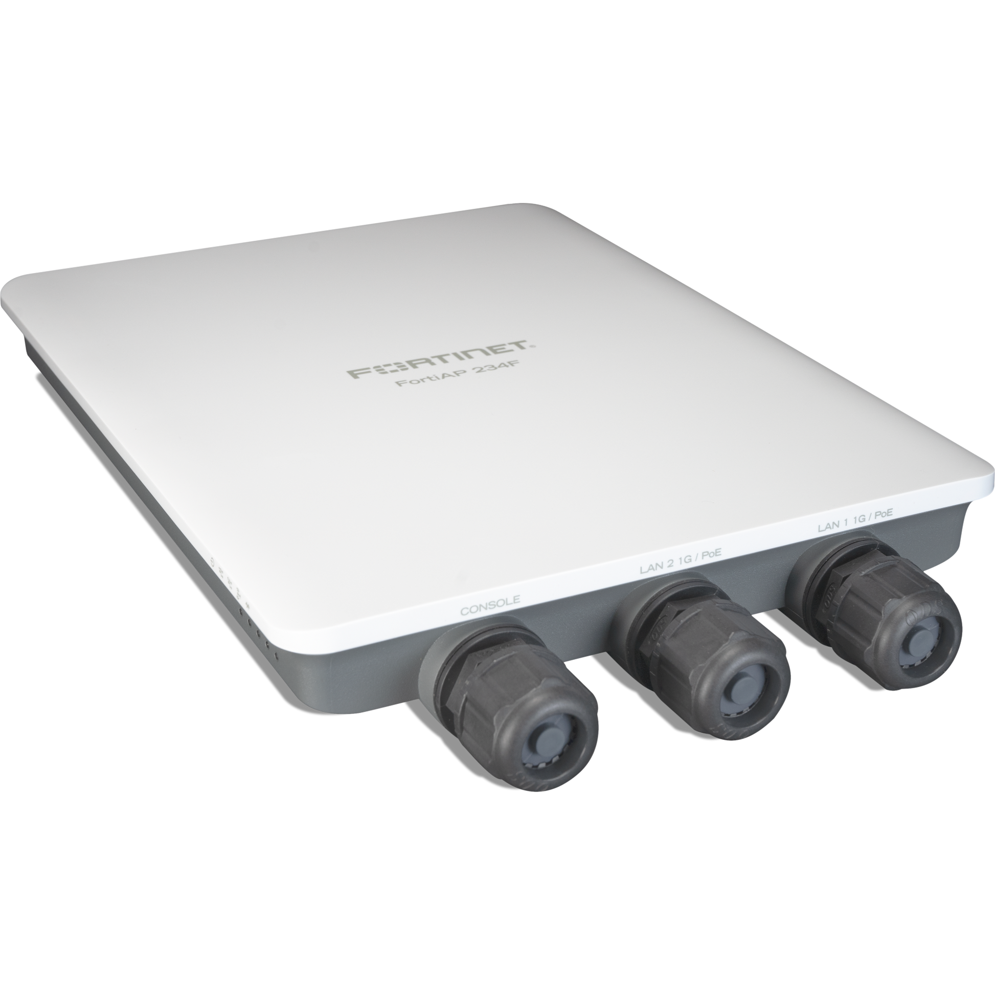 FortiAP-234F Outdoor Wirelss AP - Tri radio (802.11 b/g/n/ax 2x2 MU-MIMO, 802.11 a/n/ac/ax 2x2 MU-MIMO and 1x 802.11 a/b/g/n/ac Wave 2, 1x1 ), internal antennas, 2x 10/100/1000 RJ45 port, BT/BLE, Console Port (RJ45). Pole/wall mount kit and [FAP-234F-EO]