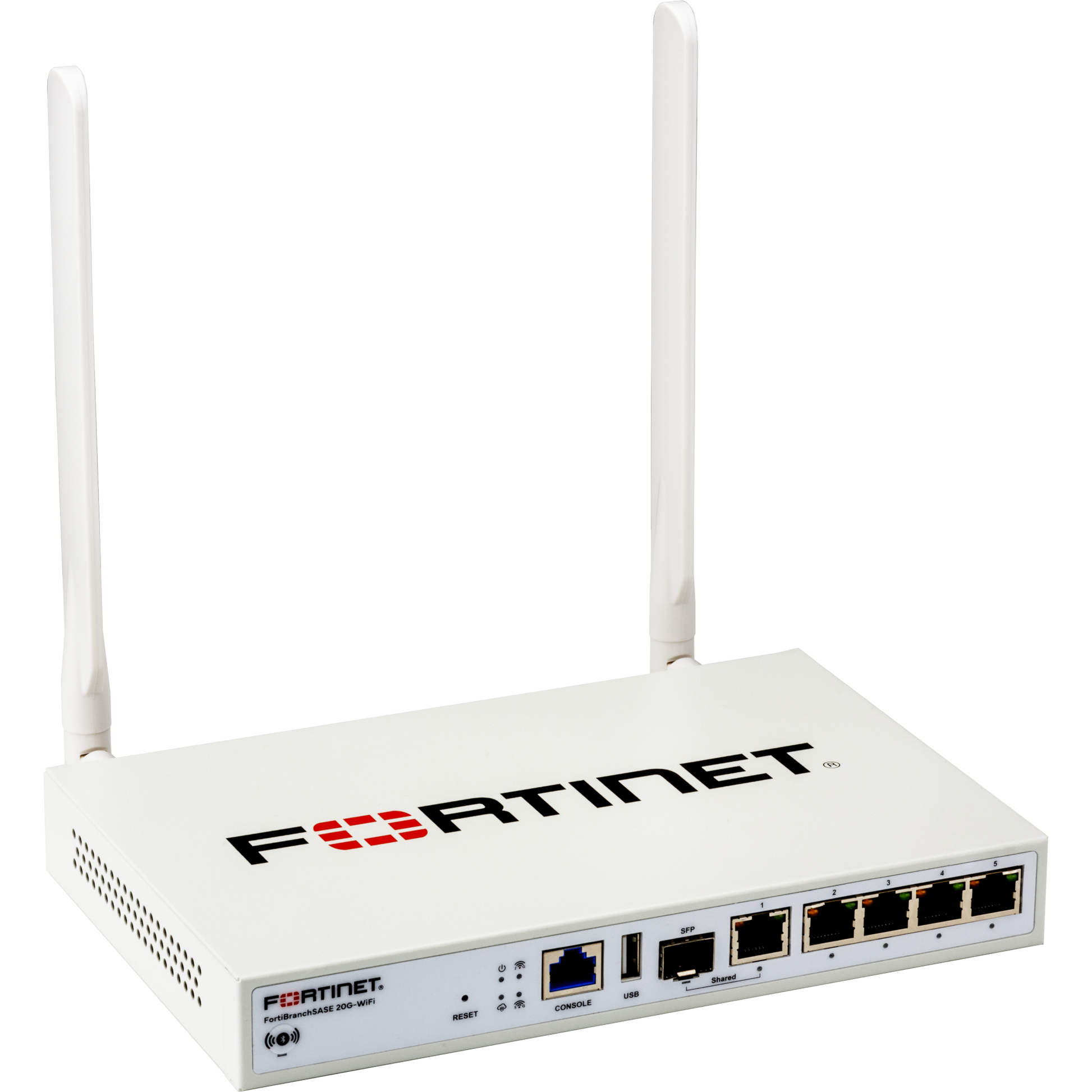 FortiBranchSASE-20G-WiFi indoor desktop/wall mount FortiSASE extension device, designed specifically to quickly provide connectivity and security to small branch offices, delivered from FortiSASE, via L2 tunnel. With integrated 2x2 2.4G/5 [FBS-20G-WIFI-B]