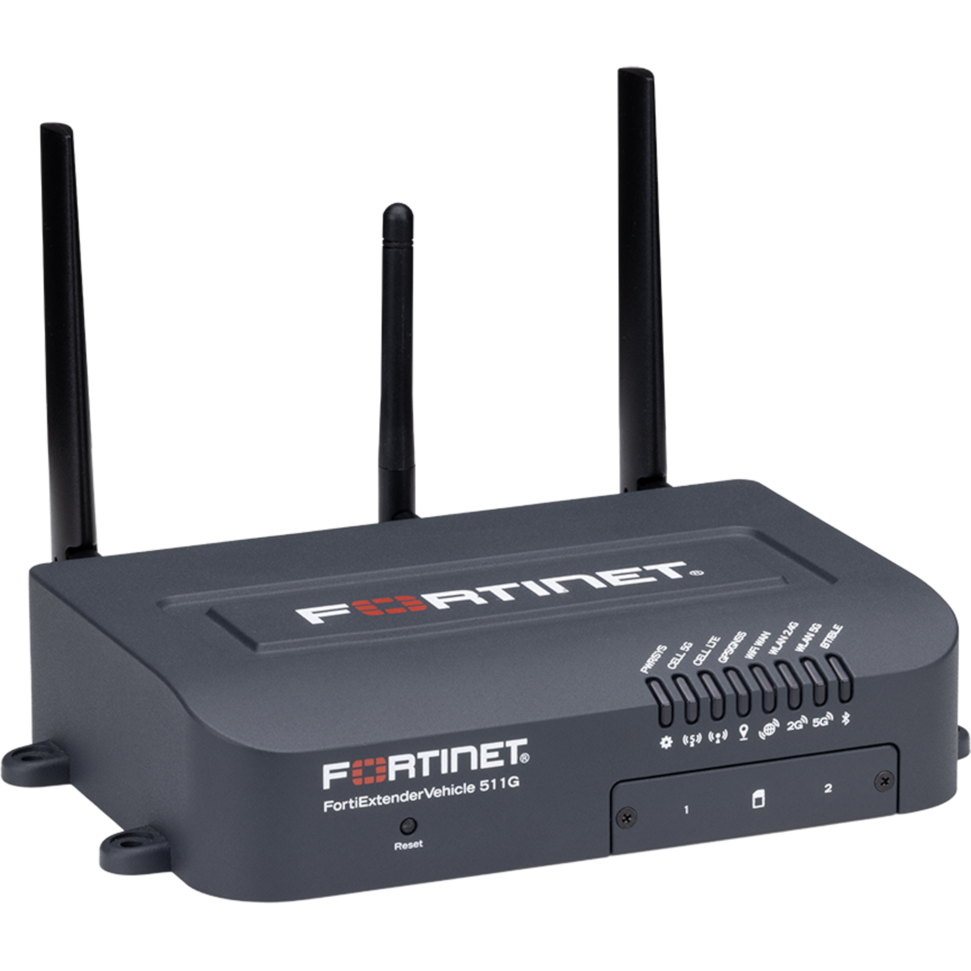 FortiExtenderVehicle-511G Rugged Broadband Wireless WAN Router for Vehicle and OT applications with 1x "Dual SIM 5G Sub-6GHz M.2 Module (DL/UL=3.4Gbps/0.46Gbps)" + 1x reserved eSIM for NA/EMEA/APAC Carriers. It has 1x 2.5GE WAN + 4x GE LAN RJ [FEV-511G-E]