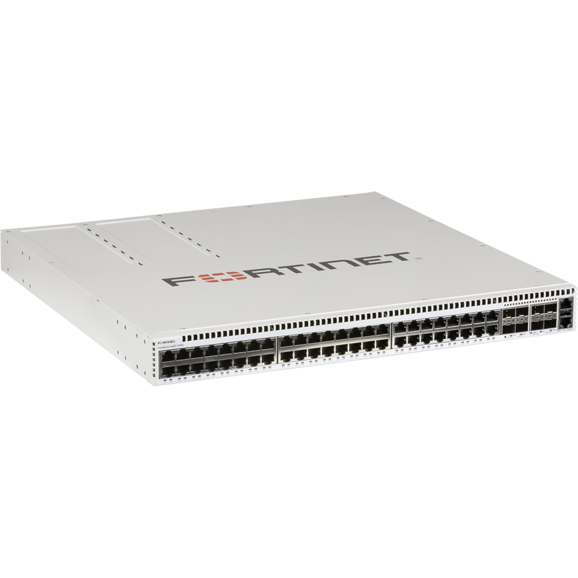 FortiSwitch-648F-FPOE Layer 2/3 FortiGate switch controller compatible PoE 802.3bt switch with 32x 2.5G RJ45 + 16x 5G RJ45 ports, 8x 25G SFP28 and MACSec. Max 1800W POE output limit [FS-648F-FPOE]